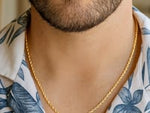 This solid diamond cut rope chain comes in 14k yellow gold and has a width of 1.4 millimeters.