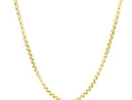 This round box chain comes in 14k yellow gold and has a width of 2.5 millimeters.