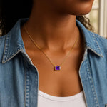 14K Yellow Gold Emerald Cut Amethyst Necklace