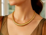Crafted in rich 14K yellow gold, this graduated Tubogas necklace showcases a bold, polished coil design that tapers gracefully for a sculpted, collar-style fit. The flexible Tubogas construction ensures comfort, while the secure box clasp offers added ease and peace of mind during wear. At 17 inches long, this statement piece sits elegantly at the neckline perfect worn solo or layered with other favorites for a refined, contemporary look.