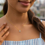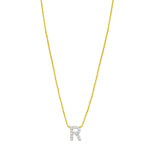 14K Yellow Gold Mini Diamond R Initial Pendant Necklace