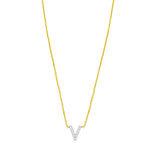 14K Yellow Gold Mini Diamond V Initial Pendant Necklace