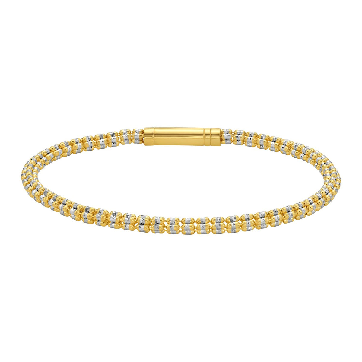 Elevate your style with this 14K two tone gold diamond cut bead chain bracelet. At 7 1/2 inches, it offers a perfect fit for everyday elegance. Its shimmering design catches the light beautifully, making it a must-have addition to any jewelry collection.