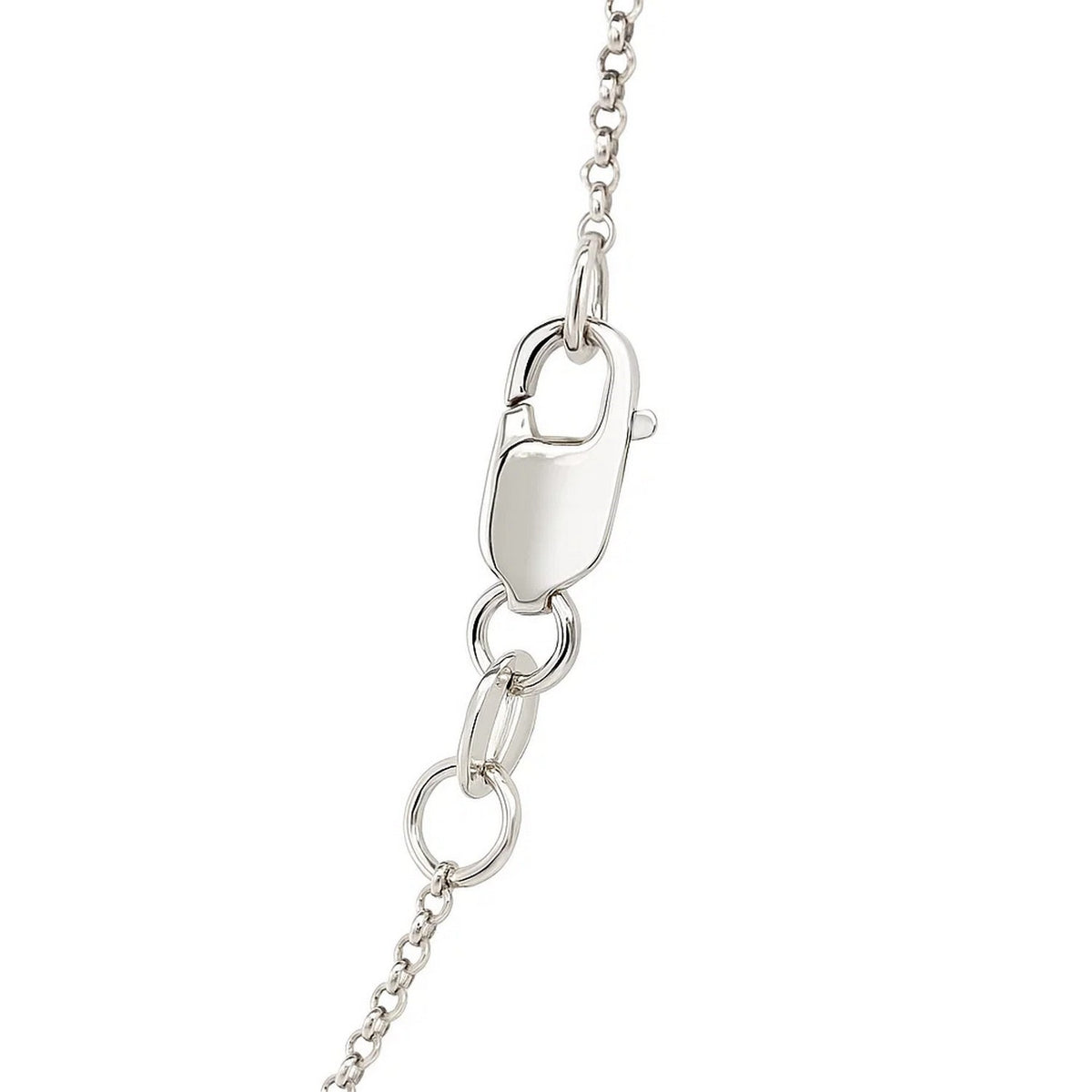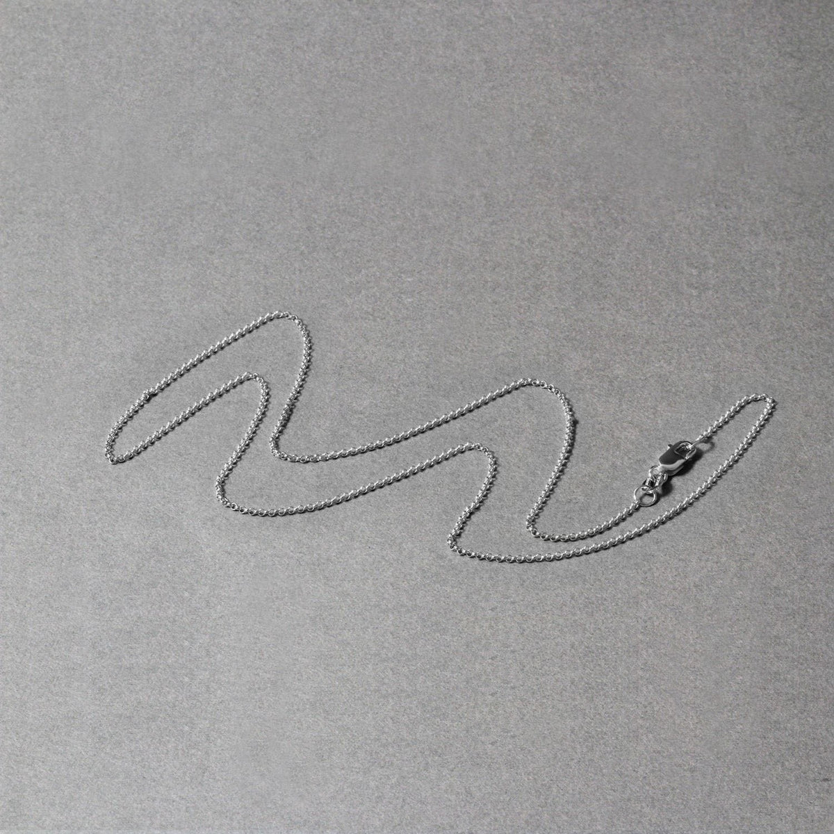 This diamond cut rolo chain comes in 14k white gold and has a width of 1.10 millimeters.