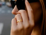 Striking and minimalistic, this 14k yellow gold open double T-bar ring embodies strength and structure with its clean, angular design. The polished finish enhances its contemporary appeal, making it a commanding statement piece for those who appreciate modern elegance. Ring size 7