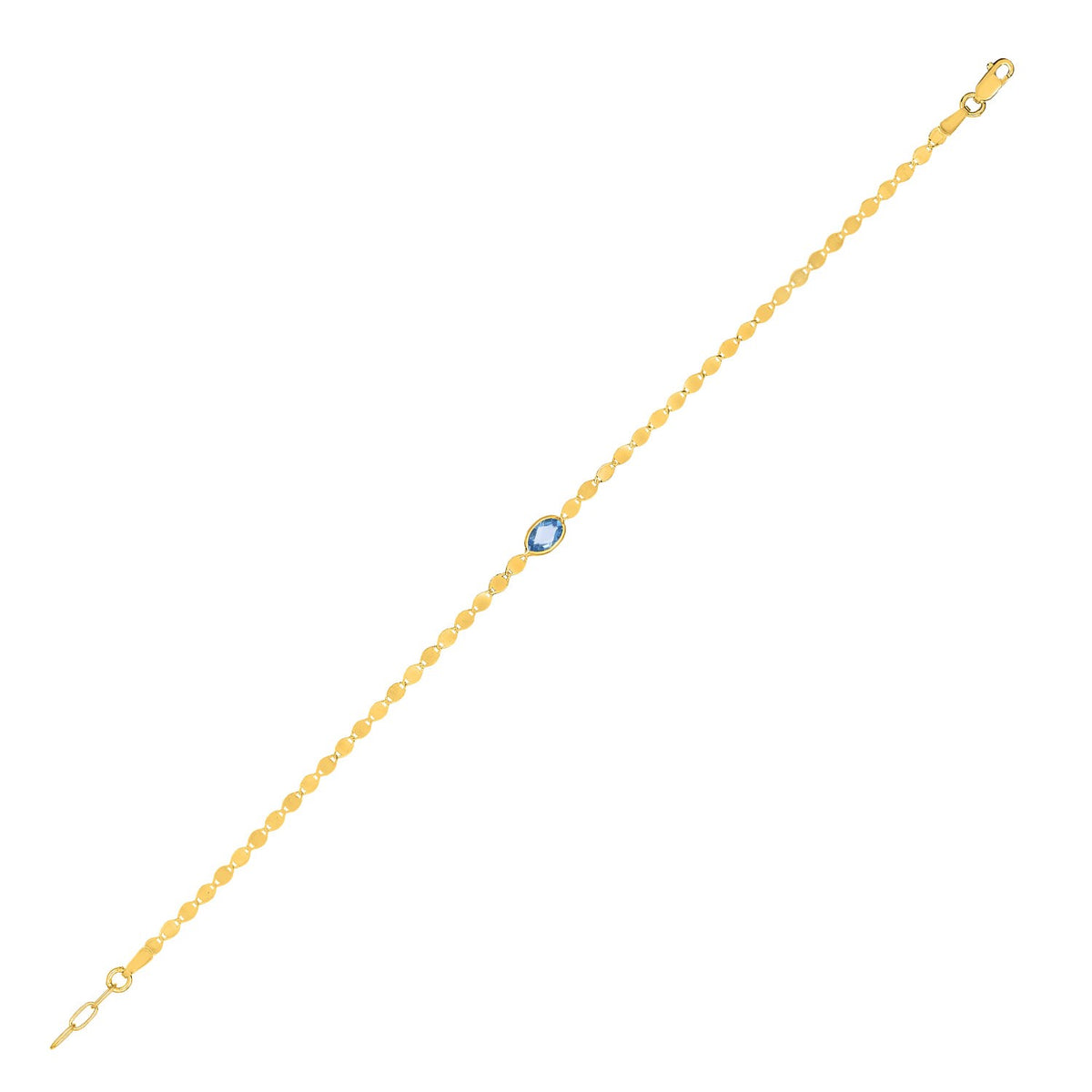 14K Yellow Gold Blue Topaz Mirrored Chain (2.20 mm)