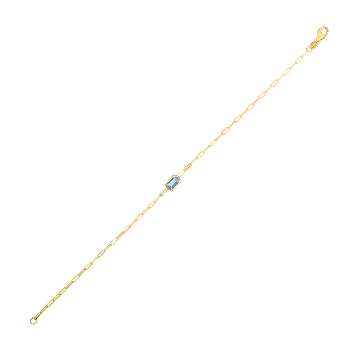 14K Yellow Gold Blue Topaz Paperclip Bracelet (1.50 mm)