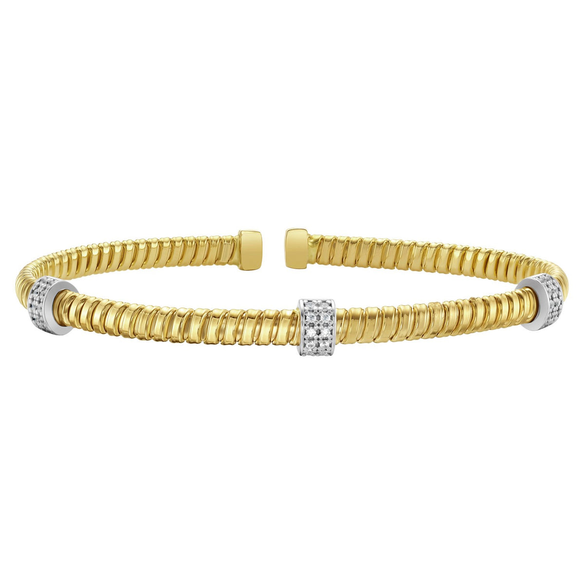 14K Yellow Gold Diamond Triple Station Tubogas Cuff