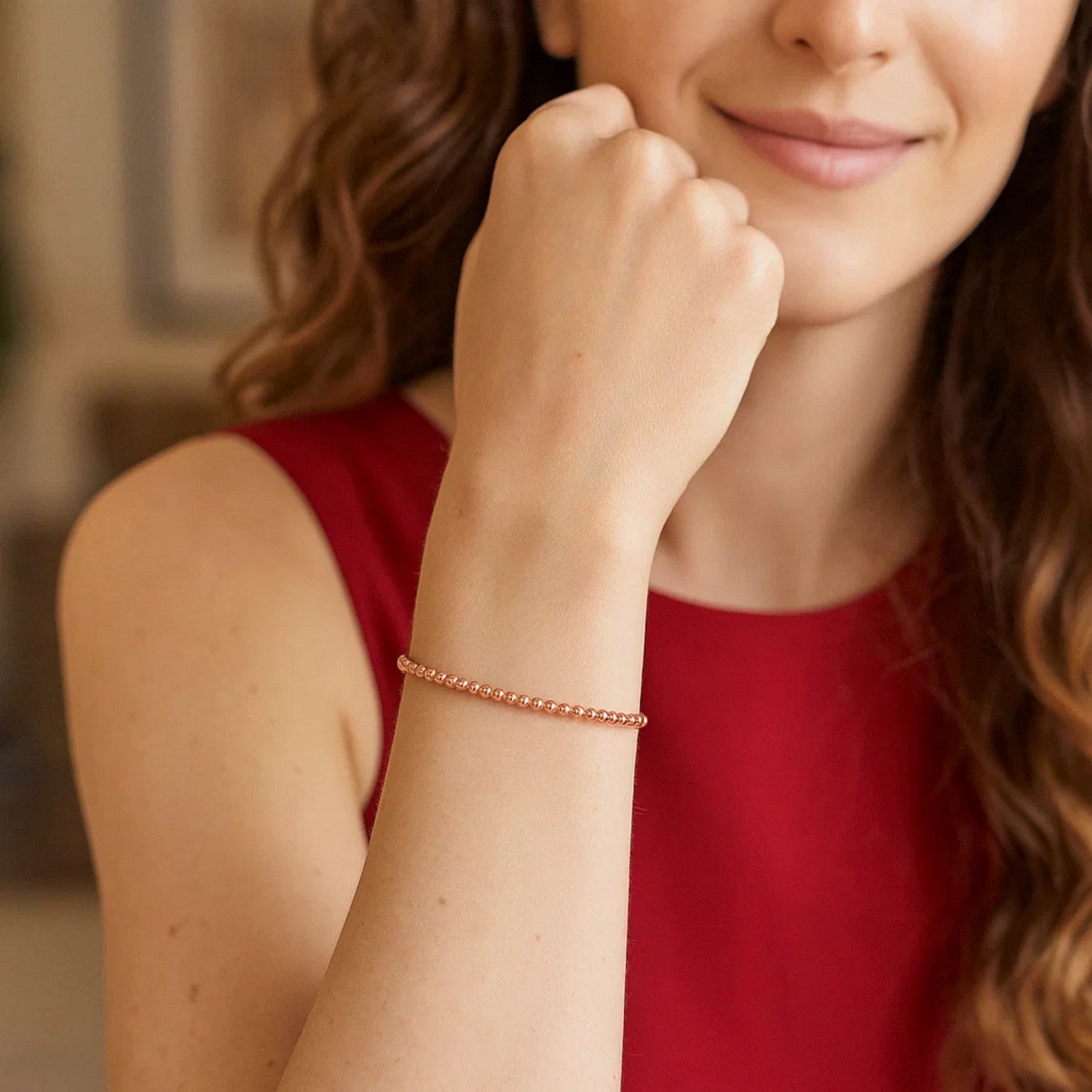 14K Rose Gold Diamond Cut Stretchable Moon Cut Bead Bracelet (3.00 mm)
