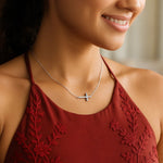 This 14K white gold sideways cross necklace features a sleek diamond-cut finish that adds radiant sparkle to its modern silhouette. Set on a delicate chain, it offers a meaningful and stylish look perfect for everyday wear, layering, or gifting.