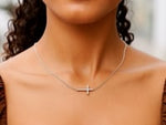 14K White Gold Diamond Cut Sideways Cross Necklace