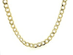 This curb chain comes in 10k yellow gold and has a width of 4.4 millimeters.