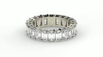 This dramatic eternity band features the traditional shine of 14k white gold, and the unparalleled sophistication of beautiful prong-set emerald cut lab grown diamonds. The light it radiates is as eternal and bright as the emotion it symbolizes.