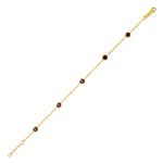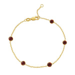 Elevate your everyday elegance with our 14K Yellow Gold Garnet Station Bracelet. Crafted from polished 14K yellow gold open cable chain measures a refined 7 inches in length, with a convenient 6 1/2 inches jump ring for an adjustable fit. Secured with a sturdy lobster clasp, this piece blends timeless design with wearable luxury perfect for stacking or wearing solo.