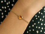 14K Yellow Gold Citrine Heart Bracelet (1.50 mm)