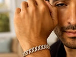 14k Two Tone Gold Curb Chain Bracelet with Diamond Pave Links (9.50 mm)