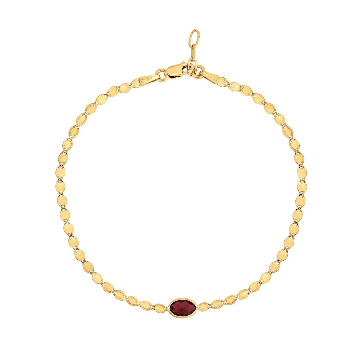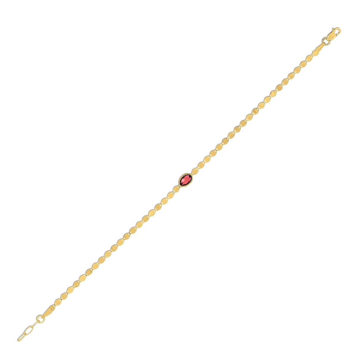 14K Yellow Gold Garnet Mirrored Chain Bracelet (2.20 mm)