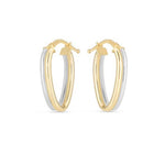 Elegant 14K two-tone gold double oval hoop earrings featuring intertwined yellow and white gold ovals with a polished finish. The layered dual-tone design adds depth and sophistication, creating a timeless, versatile look suitable for any occasion.