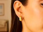 14K Yellow Gold Checkerboard Patterned Hoop Earrings
