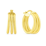 14K Yellow Gold Large Triple Row Hoop Earrings (15.00 mm)