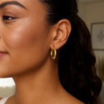 Stunning 14K yellow gold diamond-cut hoop earrings featuring an intricate etched pattern and polished finish. The detailed diamond-cut texture catches the light beautifully, adding sparkle and sophistication—perfect for elevating both everyday and evening looks.