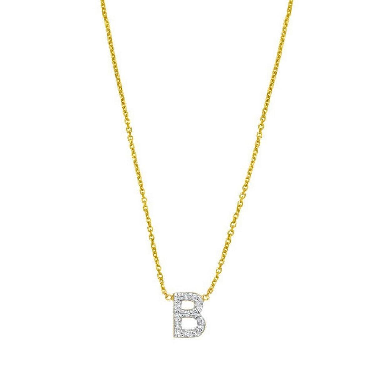 14K Yellow Gold Mini Diamond B Initial Pendant Necklace