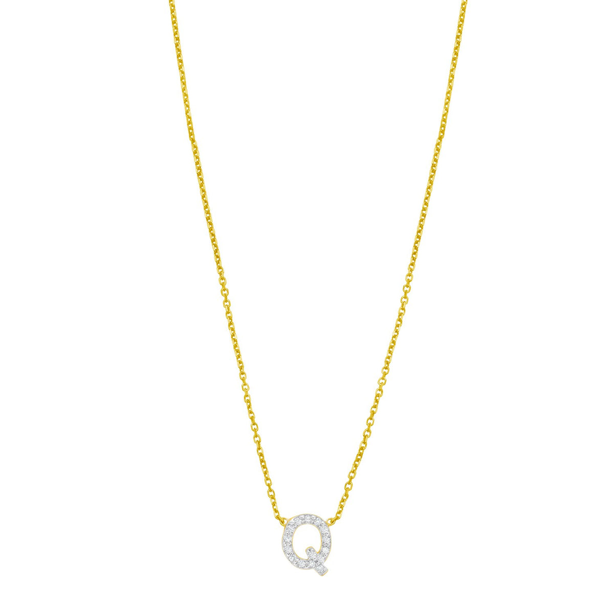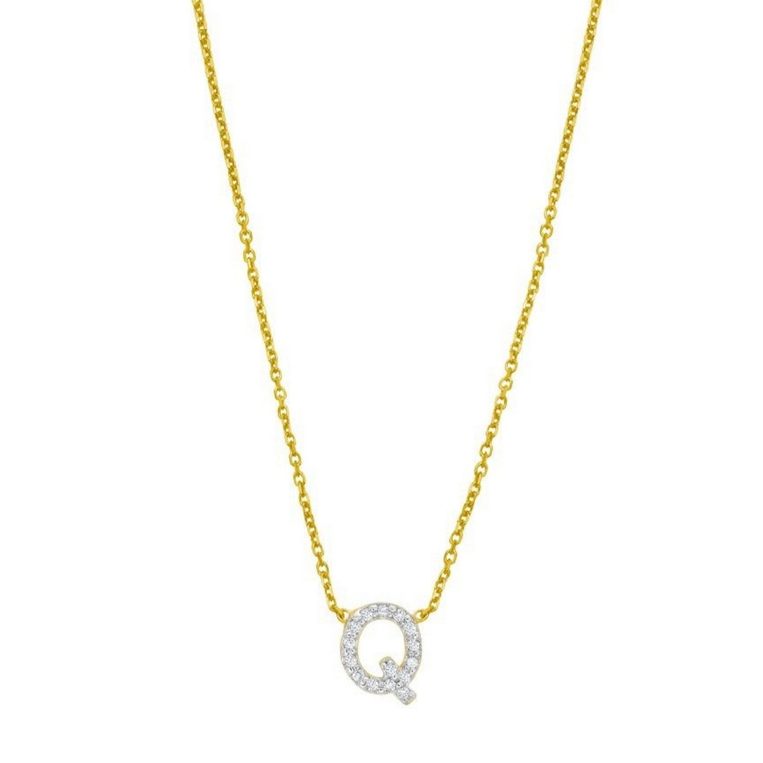 14K Yellow Gold Mini Diamond Q Initial Pendant Necklace