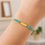 14K Yellow Gold Turquoise Rectangle Links Bracelet (3.50 mm)