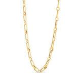 This 14k yellow gold paperclip rondel link chain offers a refined take on a classic design, blending sleek, elongated paperclip links with rondel-shaped connectors for added depth and texture. The alternating elements create a rhythmic, eye-catching flow, enhancing its dimensional appeal while maintaining a polished, sophisticated aesthetic. Versatile and elegant, this necklace is perfect for layering or making a statement on its own.