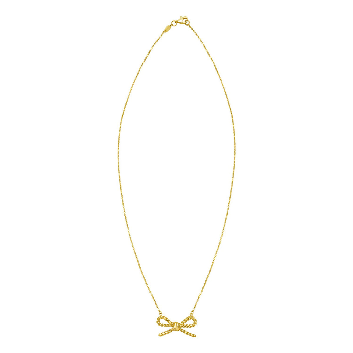 14K Yellow Gold Polished Twisted Rope Bow Necklace