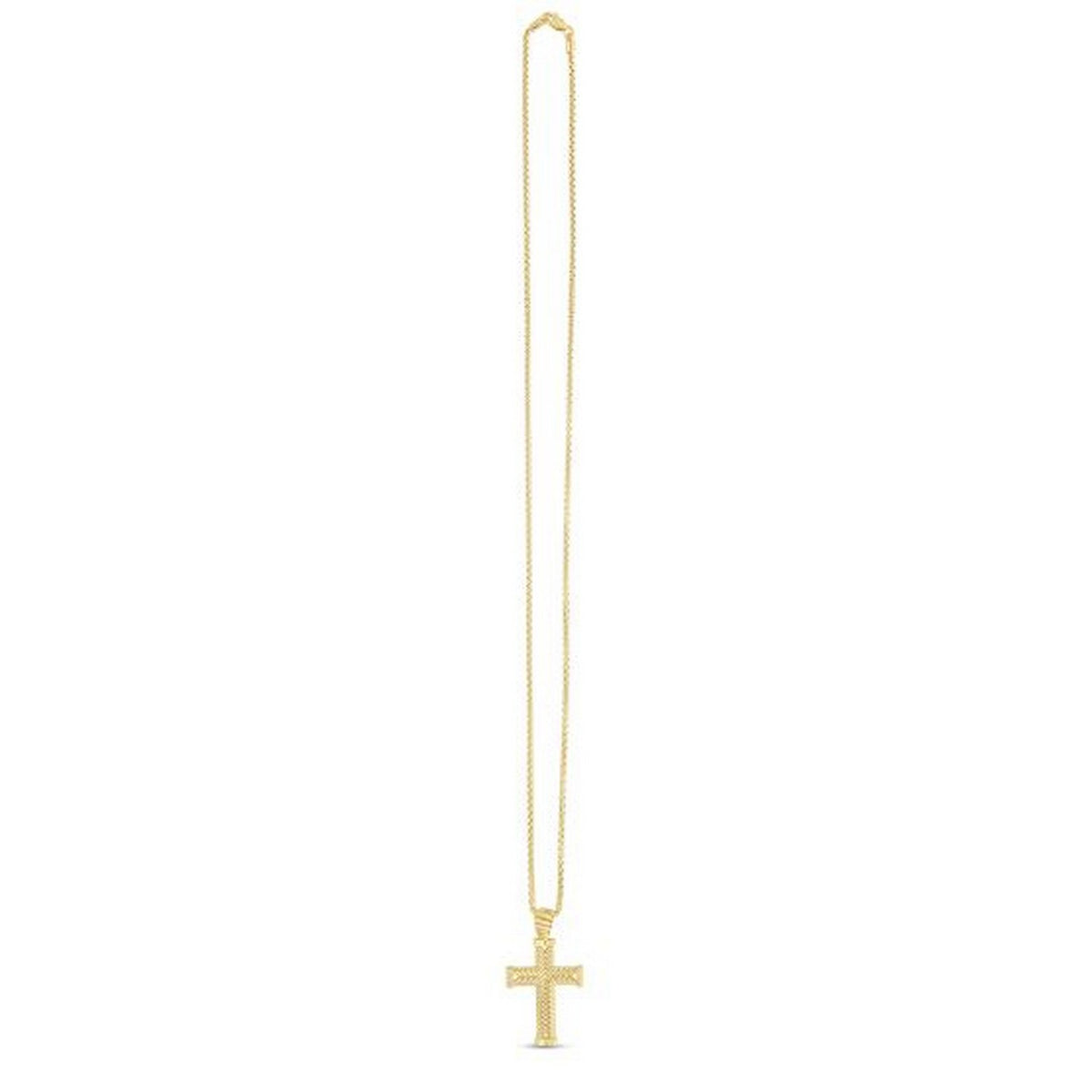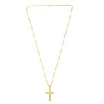 Classic 14K yellow gold polished cross pendant elegantly paired with a 1.8mm lite round box chain. Finished with a secure lobster clasp, this timeless piece offers a radiant shine and enduring style—perfect for everyday wear or as a meaningful gift.