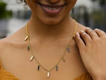 14K Yellow Gold Onyx And MOP Inlay Station Necklace