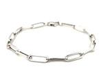 This simple yet dramatic bracelet combines the timeless shine of 14K white gold and the modern geometry of paperclip chain links. Bracelet is 7 1/2 inches long, 4.2mm wide, and closes with a lobster clasp.