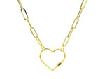 14k Yellow Gold Paperclip Chain Necklace with Heart Carabiner Clasp