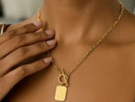 14k Yellow Gold Paperclip Chain Necklace with Rounded Rectangle Pendant