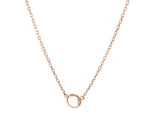 The beautiful spring-like green of a fine round white topaz adds a splash of color and glimmering depth to this classic 14k rose gold necklace. Necklace is 17 inches long and closes with a spring ring clasp. Peridot is 6mm in diameter.