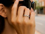 Elevate your jewelry collection with this sophisticated stackable ring, featuring a series of polished oval link motifs. Crafted in solid 14K gold, its slim, modern design adds subtle texture and a contemporary feel to any look. Whether worn as a minimalist standalone piece or layered with other favorites to create a unique stacked aesthetic, this ring offers versatile elegance for any occasion.