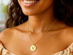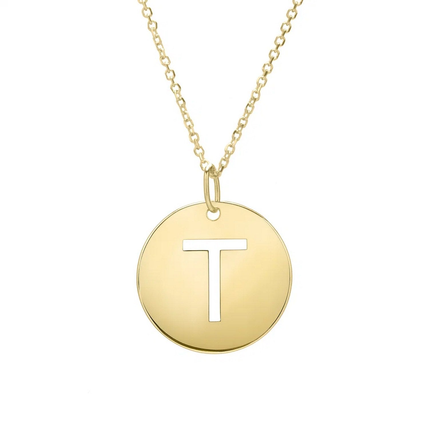 14K Yellow Gold Disc Initial Pendant