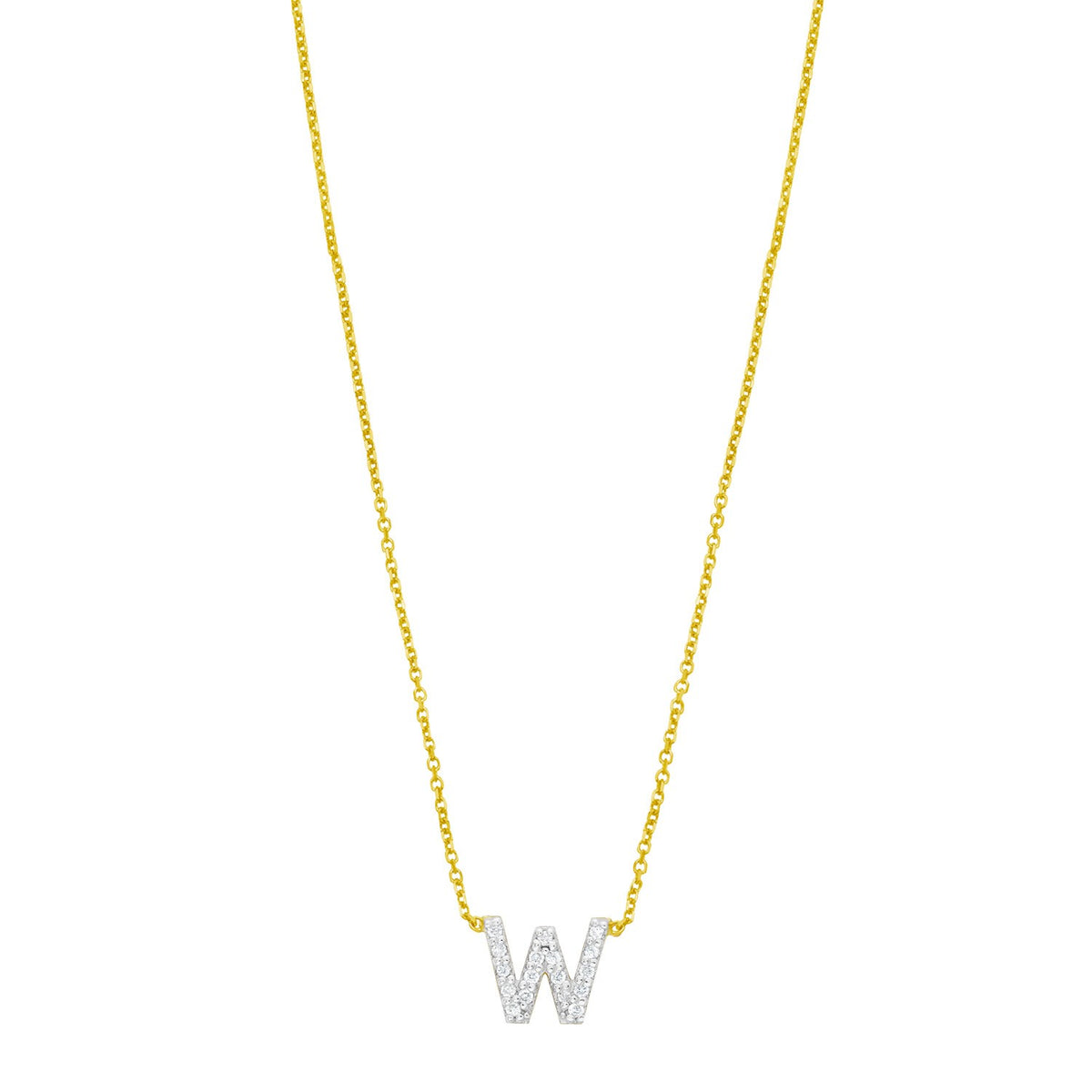 14K Yellow Gold Mini Diamond W Initial Pendant Necklace
