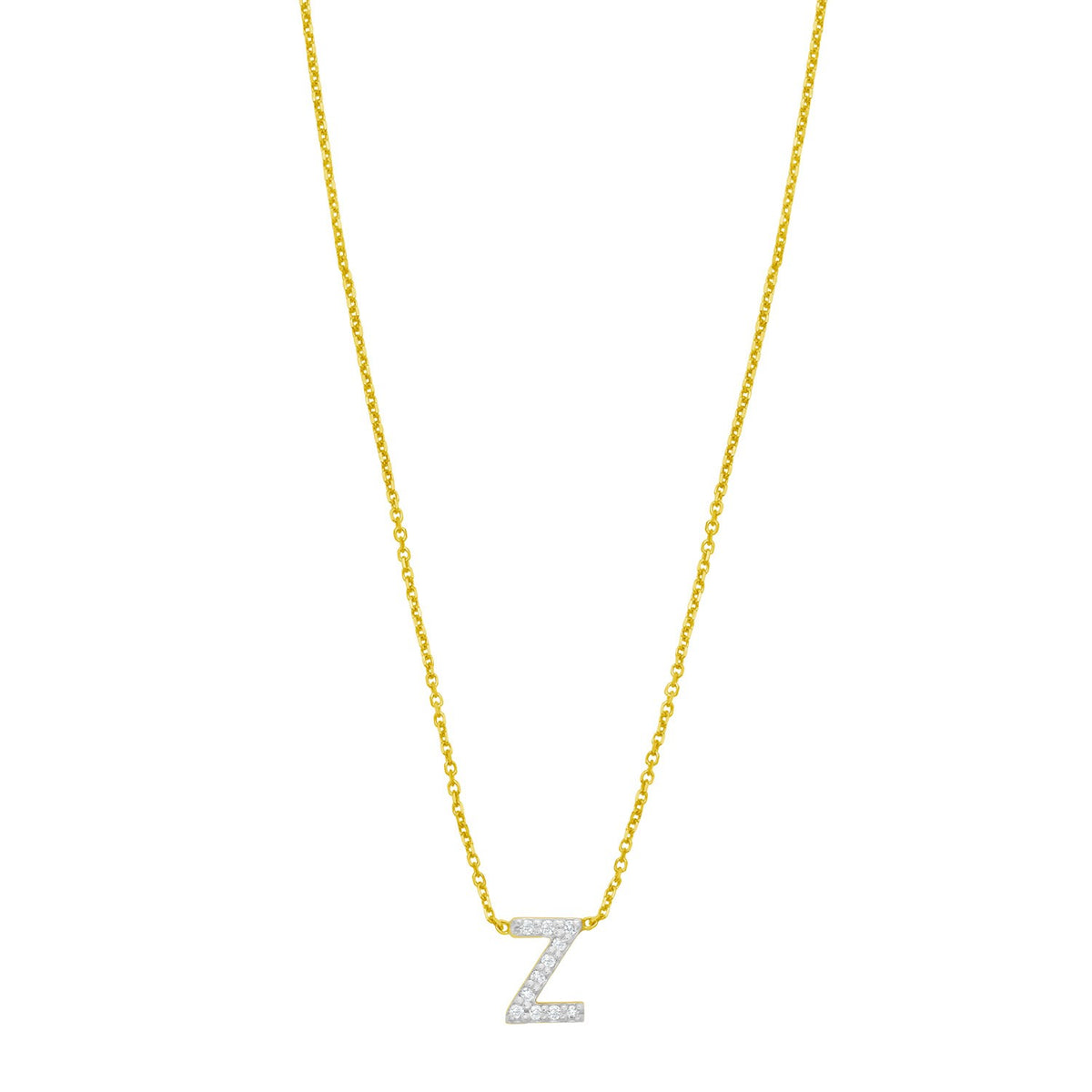 14K Yellow Gold Mini Diamond Z Initial Pendant Necklace